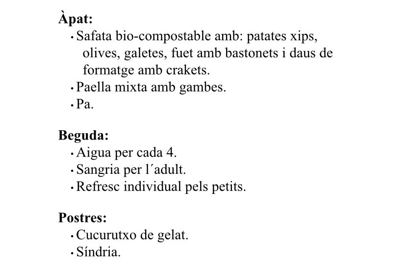 Adjuntem el menú que es servirà als assistents en el sopar.