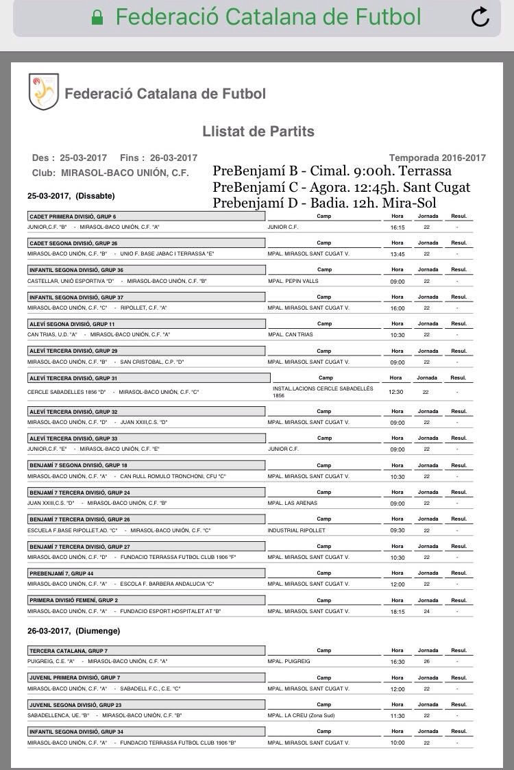 Listado de partidos de Federació Catalana de Fútbol para el 25 y 26 de Marzo.