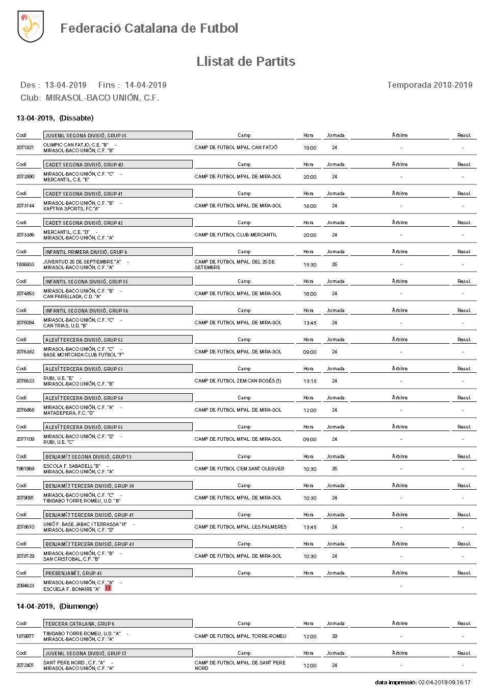 2122Partidos 13/14 Abril 2019 Partidos 13/14 Abril 2019 Sábado 13 Abril @ 8:00 am - Domingo 14 Abril @ 5:00 pm Share This Story, Choose Your Platform! FacebookTwitter Noticia anterior Proxima noticia